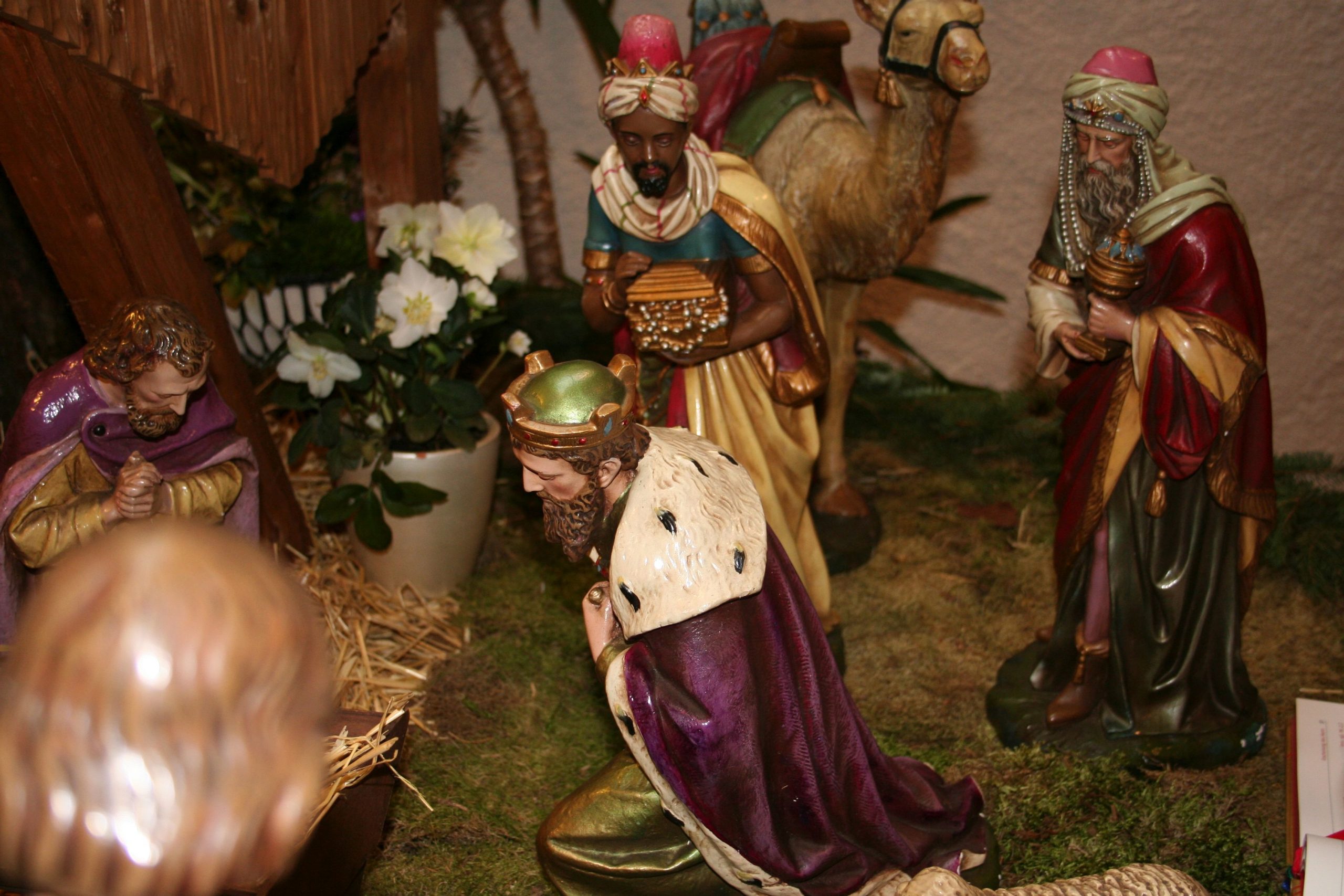 + Die Krippenfiguren verschiedener Hautfarbe stehen für die Vielfalt der Nationalitäten: alle sind eingeladen, zu Jesus Christus zu kommen – ohne Zwang; aber auch ohne irgendjemanden auszuschließen! Dafür ist Jesus Christus zur Welt gekommen: für alle Menschen!