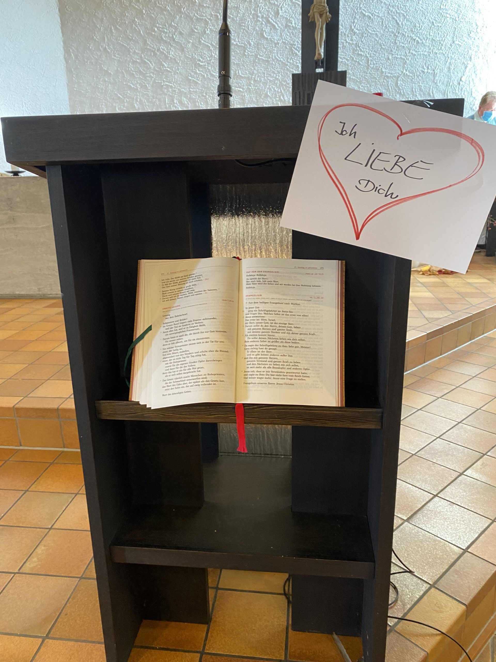 Jesus richtet im heutigen Evangelium den Blick des Schriftgelehrten und meinen Blick auf das wichtige Gebet und Gebot, das Schema Israel. Jesus Christus, hineingeboren in eine jüdische Familie, war gläubiger Jude ein Leben lang. Auch für ihn war das Schema Israel ein Herzensanliegen. Er schenkt es auch uns Christen als erstes und wichtigstes Gebot: Höre Isra- el, der Herr, unser Gott, ist der einzige Herr. Darum sollst du den Herrn, deinen Gott, lieben mit ganzem Herzen und ganzer Seele, mit deinem gan- zen Denken und mit deiner ganzen Kraft. (Mk 12,29-30) Aber das ist nicht alles. Für Jesus ist wichtig, dass alle meine Beziehungen von Liebe ge- prägt sind: meine Beziehung zu Gott – meine Beziehung zu den Nächs- ten, den Mitmenschen und Mitgeschöpfen – und meine Beziehung zu mir selbst, dass ich mich annehmen und lieben kann mit meinen Fehlern, Ecken und Kanten. Wenn alle drei Beziehungen in Balance sind, wenn sie mir am Herzen liegen, dann gibt es keine Einseitigkeiten und Schieflagen. Dann kreise ich nicht um sich selbst. Sondern: Mein Herz öffnet sich für meine Mitmenschen, für ihre Sorgen, Anliegen und Nöte, die ich in Liebe mittragen kann, und die ich manchmal auch in Liebe ertragen muss – und